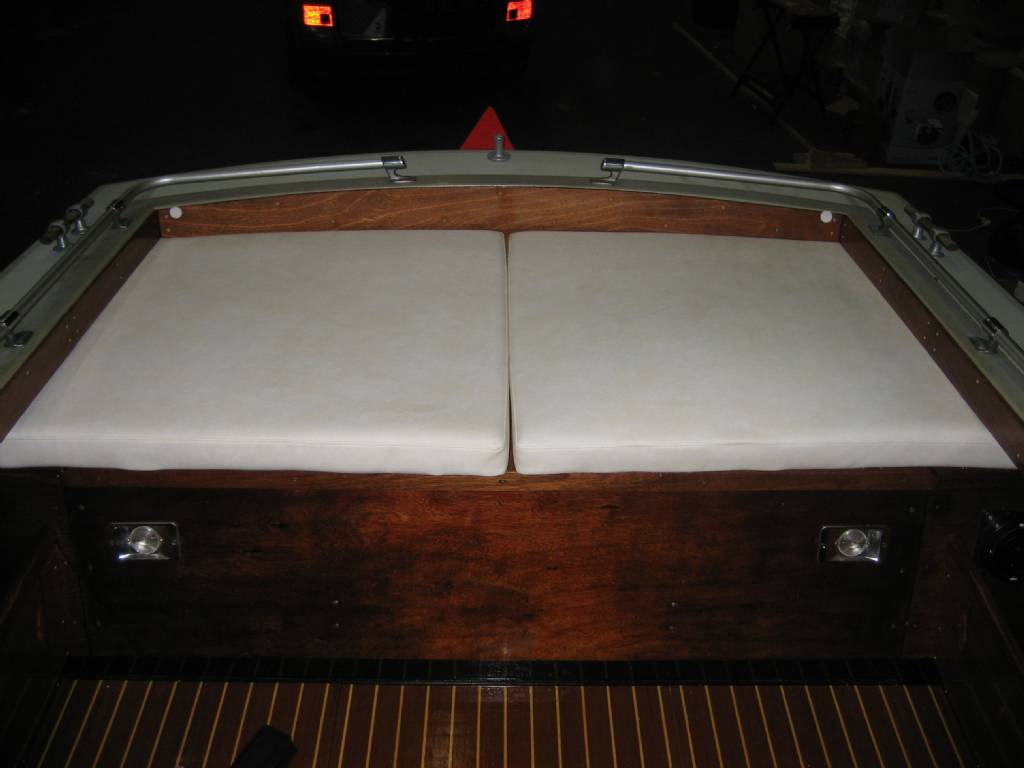 Tack för alla svar! Bifogar en (något mörk) bild på hur aktersoffan ser ut idag. Hela tanken med renoveringen från början har varit att inte göra några större ingrepp i båten än vad som är nödvändigt.