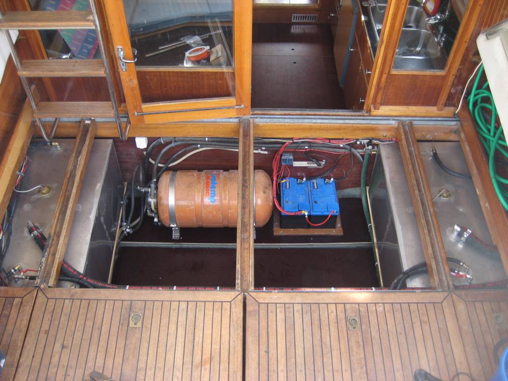 Jag har placeret varmvattenbereder och dieselvarmer på skottet inn till salonen i det nya store stuvrum vi har fået når vi har byttet och flyttet tankarna ut mod skrovsidorna på et par OF 32 båtar. På detta viset tager dessa två grejer inte mycket plats i det nya stuvrummet mitt i båten under cockpitdurken . Mvh Finn 1786.