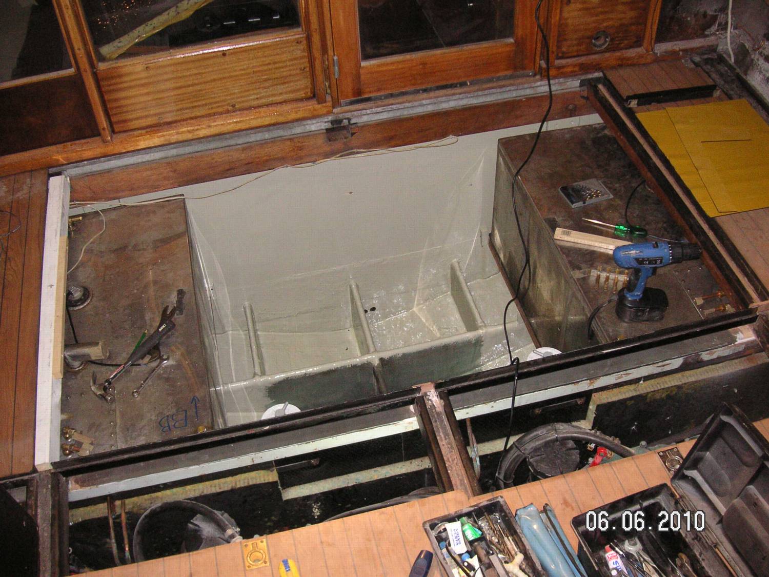 Jag har gjort 4 tankar på 200 l där 2 är mot det främre skottet och mycket högre än de i orginal går nästan upp till durken och 2 är placerade utåt sidorna utan för orginal placeringen.