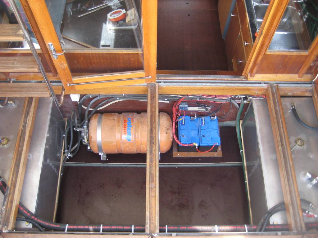 Dock har jag bytt dom gamla tankarna som läckte och satt in 2 st rostfria a 250 liter styck utmed sidorna, detta var det bästa jag gjort. En jättestuv med plats för allt som behövs och är skrymande. Jag har även ritningar på dessa om du är intresserad.