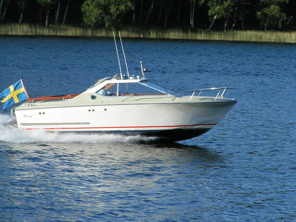 Oppgitt maxfart med 240hk V8 bensin, single prop. 35 knop.