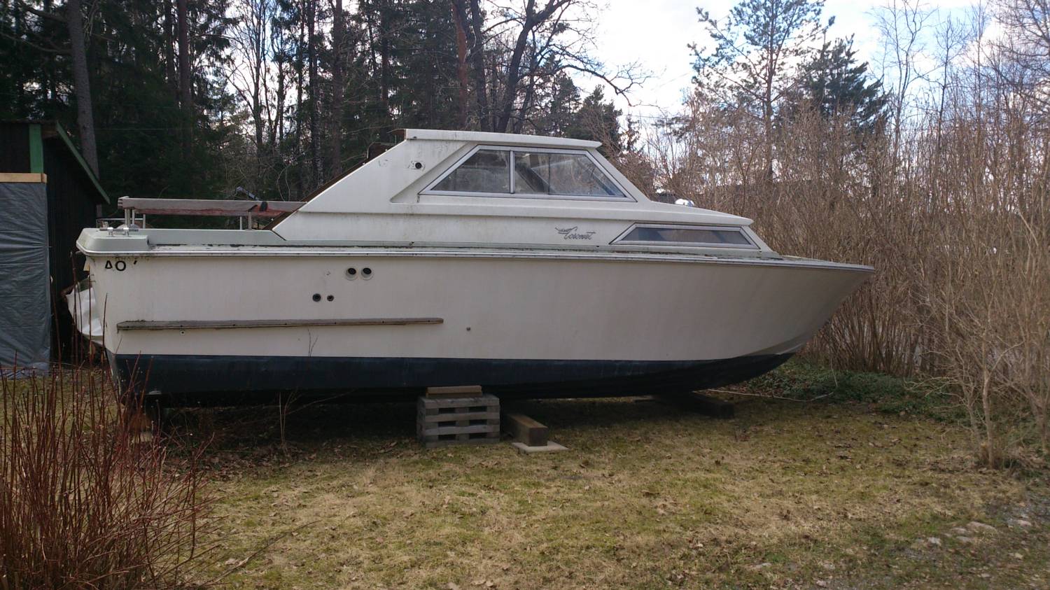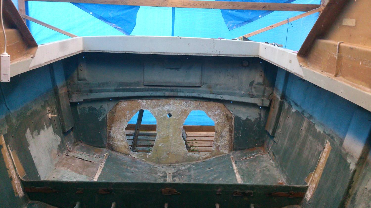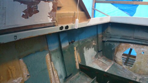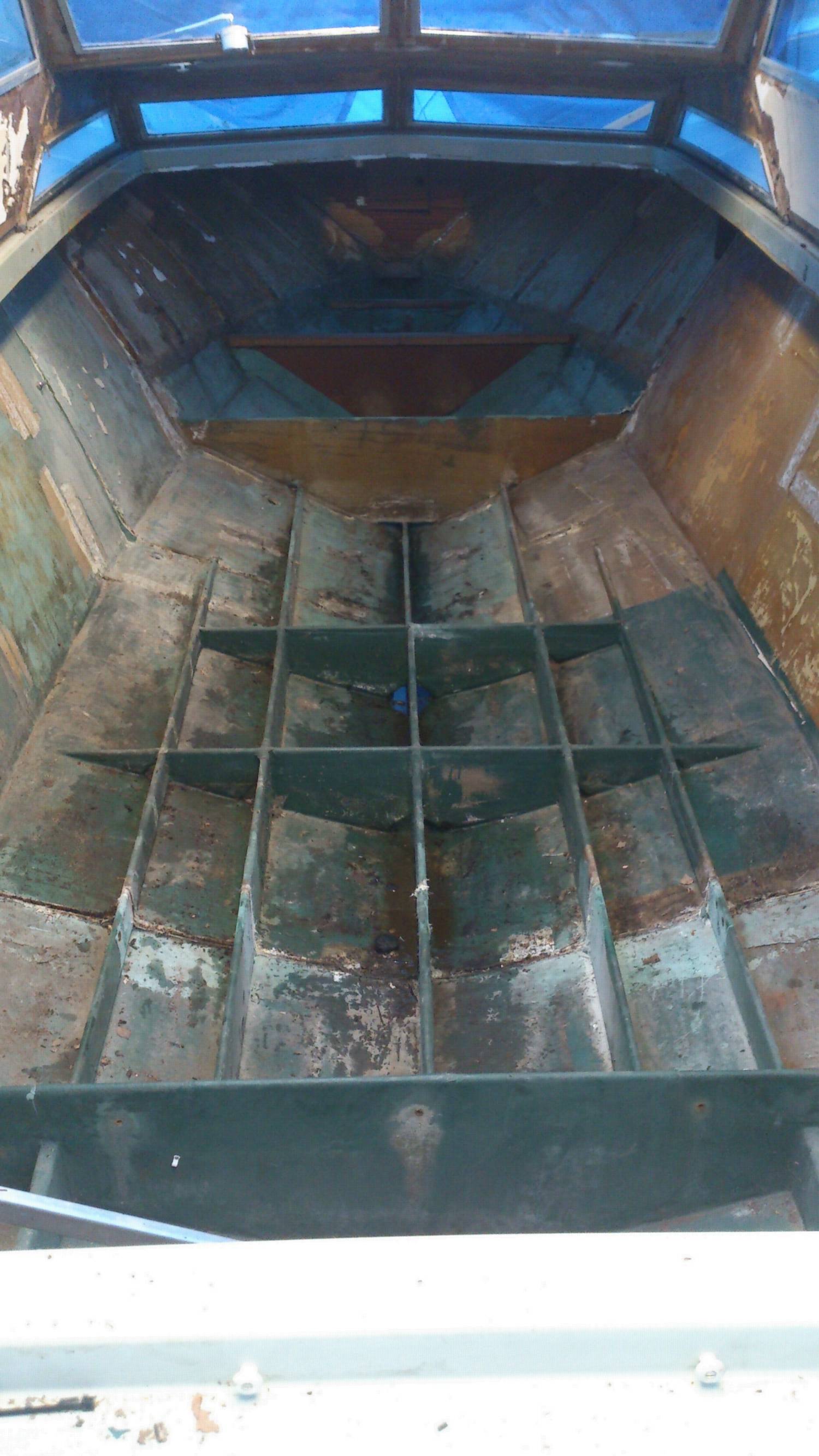 Allt trä är borta från akterspegeln därför ser det konstigt ut det ska läggas igen det ska sitta en motor i senare. Tack för tipsen det blir en egen inrednings design. Lite av trät finns kvar men det mesta fick jag sopa ihop det hade börjat växa buskar o gräs i båten!!