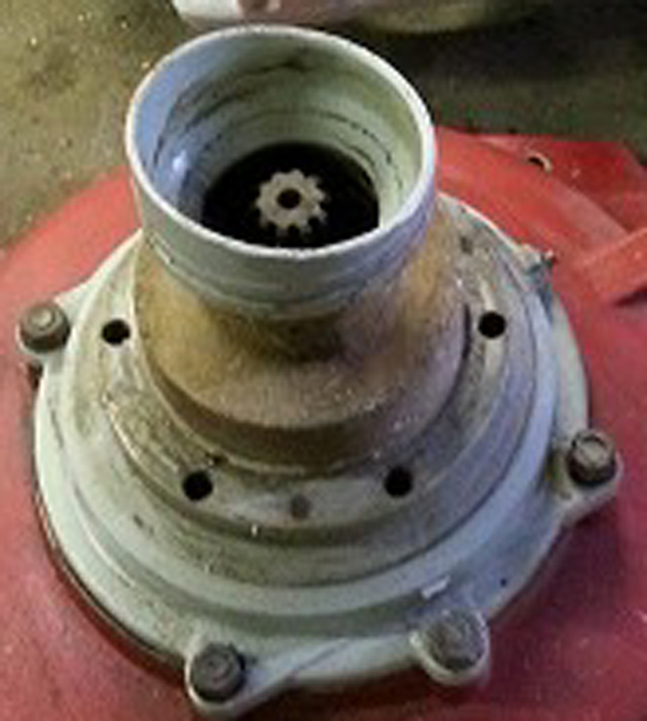 • Adapter mellom «gearkasse-adapter» og 280 transom. Jeg fikk tak i originale VP adaptere som brukes til V8 bensinmotorer. Den passer på «gearkasse adapter» (SAE standard festehull).