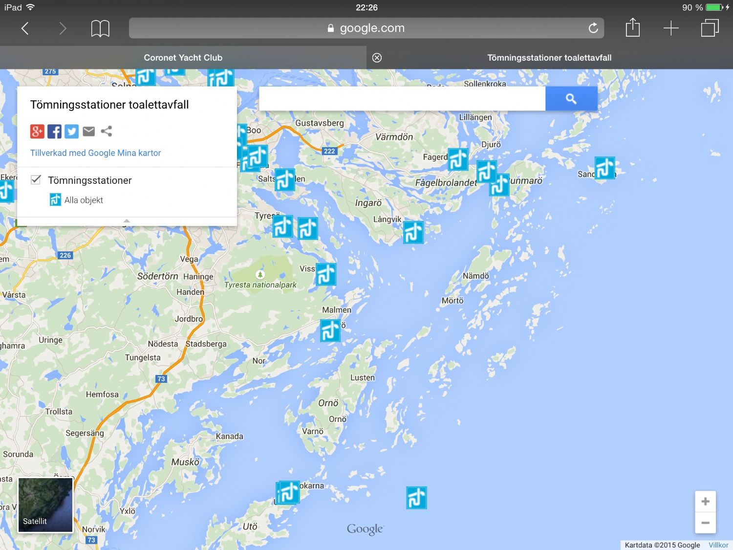 Den friliggande flytande stationen utanför ingarö vid björkvik kostar då ca 20 distans ggr 2 a 2 liter distansen ca = 1120kr plus 2 timmar fram o tillbaka med tömning minst om man ska ut igen, plus att en uppfyllning av bensintanken på dyra nämndömacken krävs för att komma hem igen, Tämningarna ligger nästan alla vid fastlandet tyvärr. Antagligen för att det blir billigare att tömma dem direkt i tankbil på land.