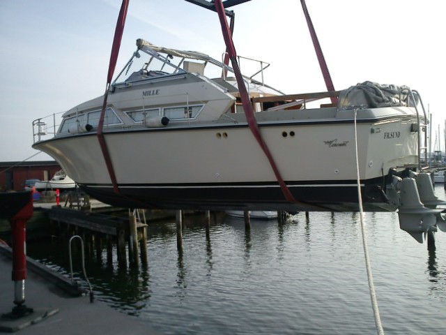 Vi bruger Hempel Sort & Hvid emalje til vandlinjen. Du kan se på billedet hvordan det ser ud med Sort