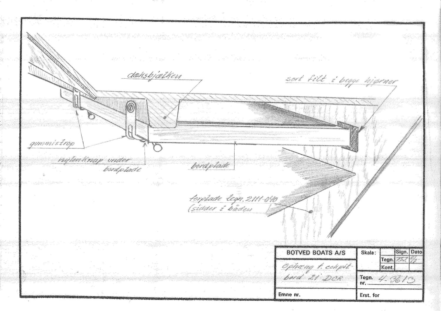 Fråga 2)... på min DC21 -66 har jag resterna av ett fäste i styrbords förvaringsfack i sittbrunnen. En trälist och en liten gummiplopp finns kvar. Jag gissar att det är för skivan, har aldrig provat. Har dock inga fästen i relingen eller under durken.