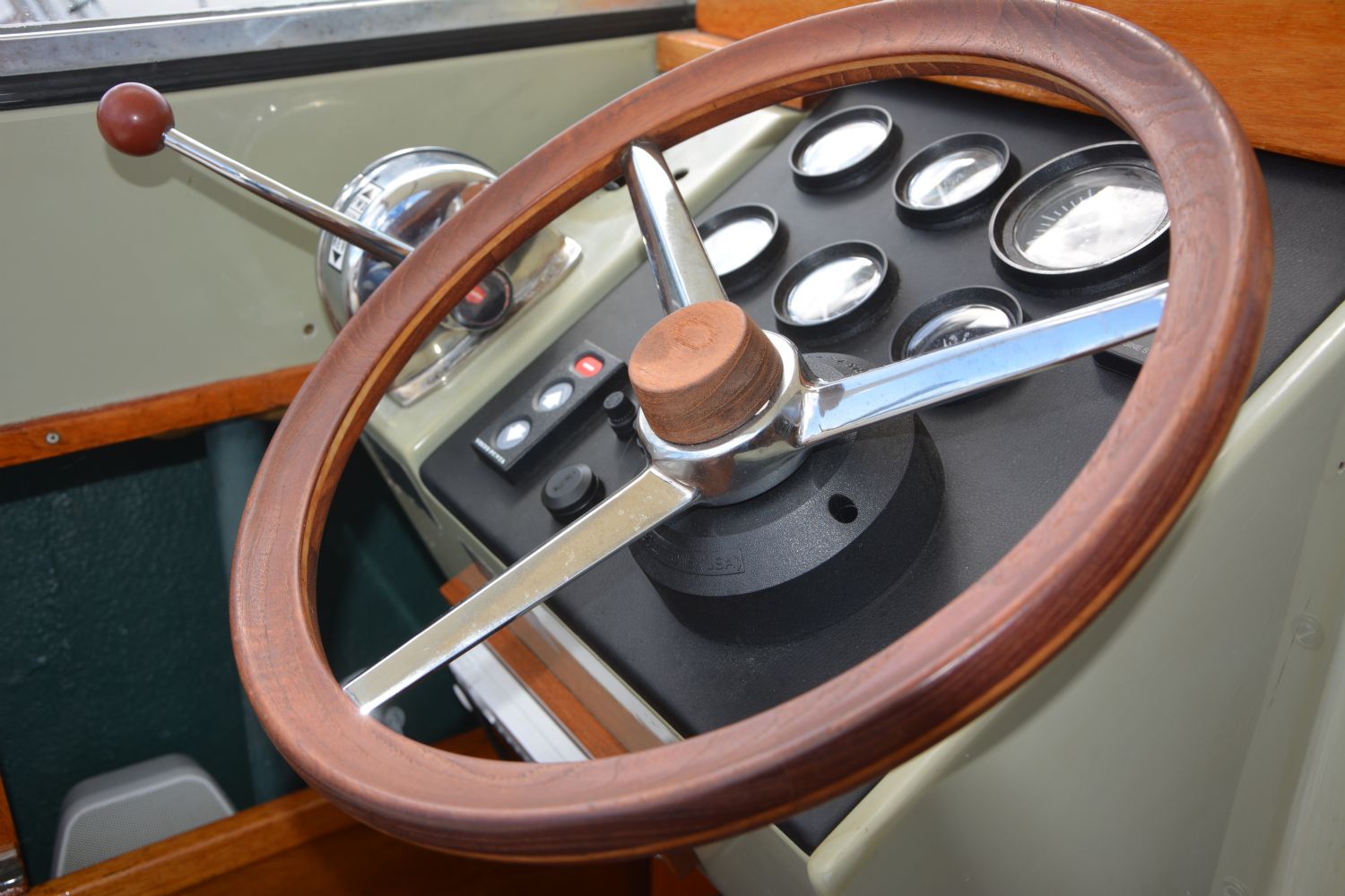 Vad varvet använde vet jag inte, men enligt hörsägen var rattarna oljade (för att inte vara hala, antar jag). Jag har oljat min med rå linolja först och sen kokt ovanpå det (båda blandade med balsamterpentin), och det har blivit bra. Tänk på den långa torktiden bara, och att det luktar extremt starkt av terpentin.