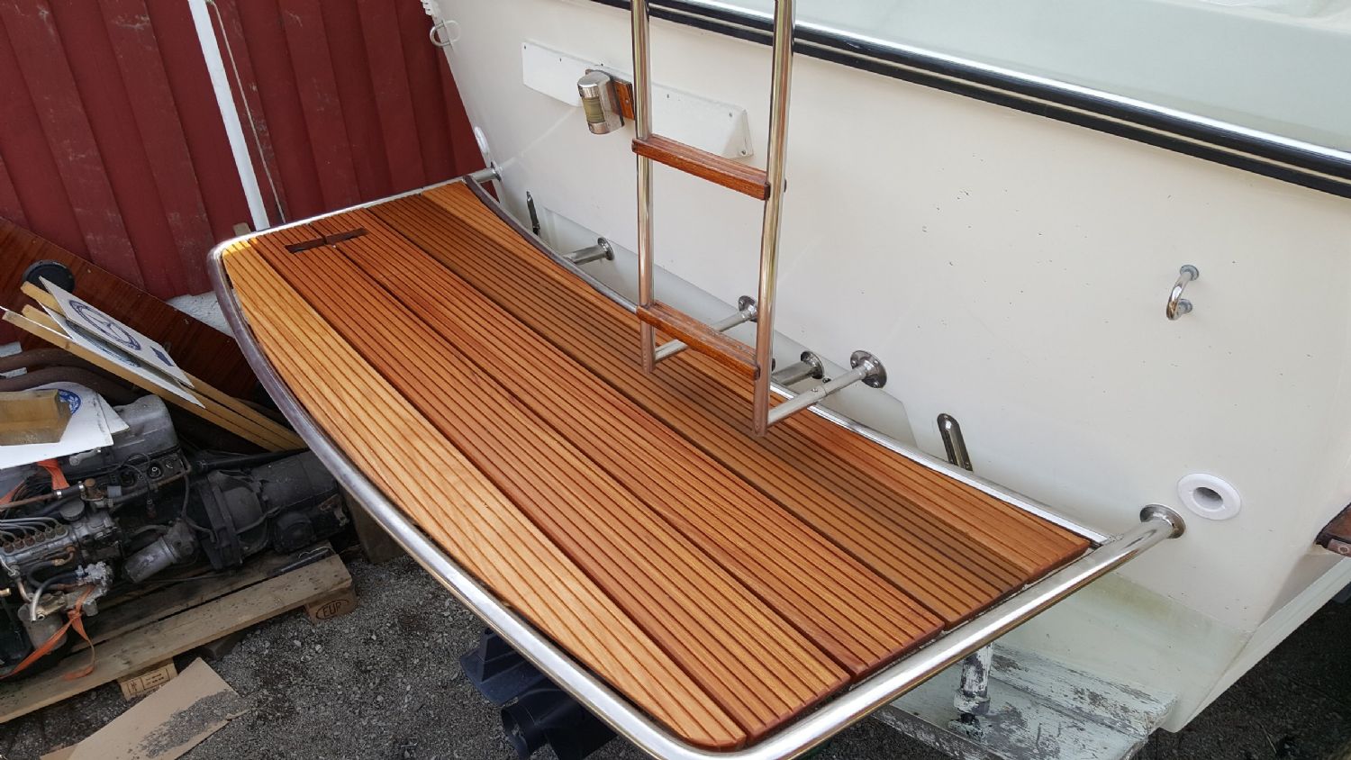 Jag tror att det bästa är att låta tillverka en egen som passar exakt till den båtmodell man har. Bifogar en bild på badbryggan till vår 24 Family som jag gjorde 2017.