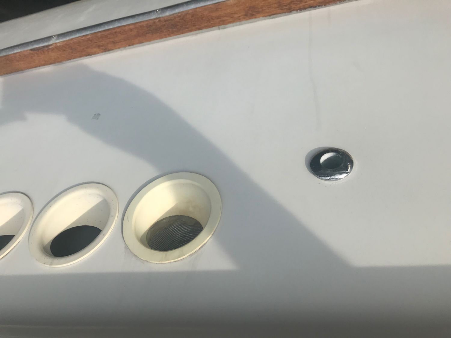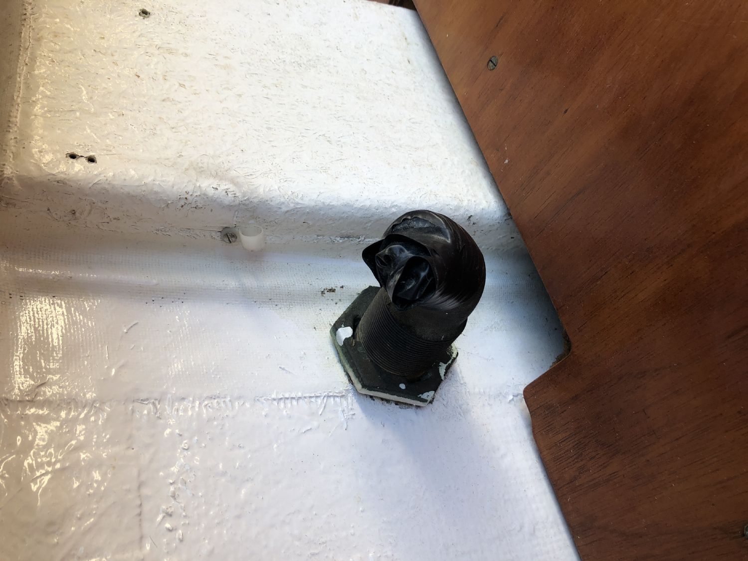 Hej, kan någon vara till hjälp och vet eller kan gissa vad detta hål i skrovet på styrbordssidan kan vara? Inget som jag använder. Det satt en Eberspächer monterad på styrbordssidan när jag köpte båten men den är flyttad och var inte ansluten till denna genomföring.