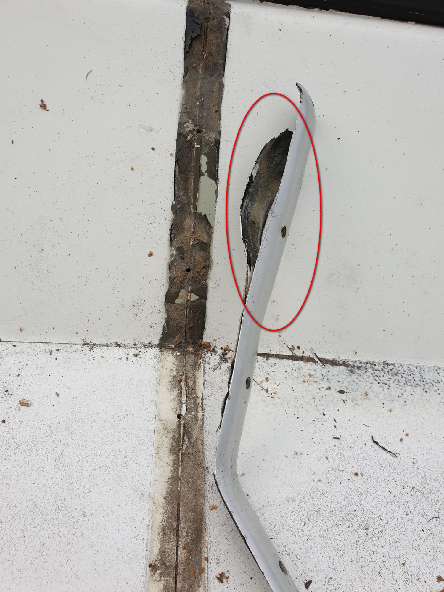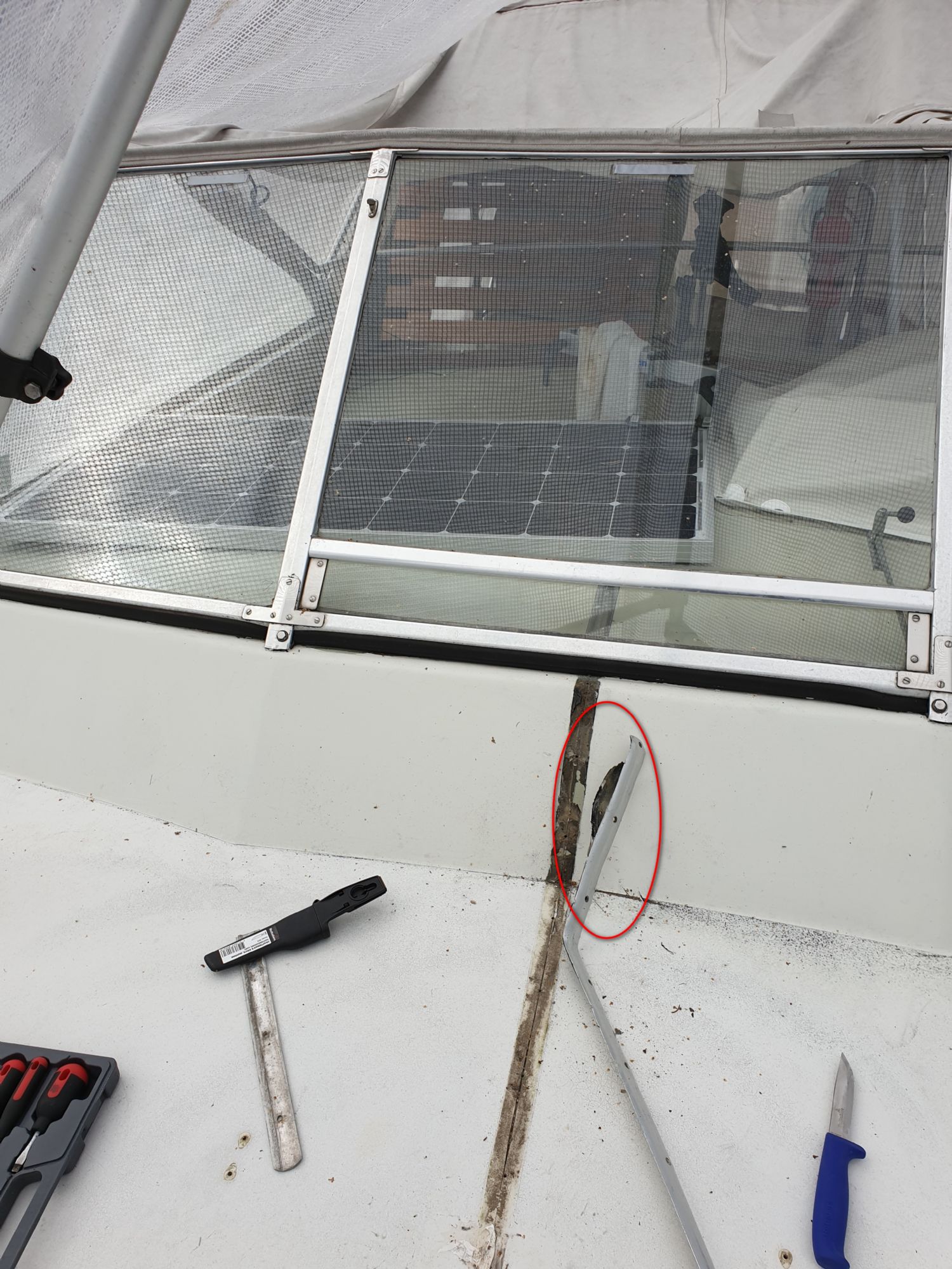 Jag ska renovera rufftaket på min Coronet 32 OF då gelcoaten är helt sprucken och glasfibern är blottad på sina ställen. Då jag demonterar aluminiumlisten mitt på taket (löper i båtens färdriktning) upptäcker att det sitter något som liknar en packning mellan alulisten och taket (bifogar bild). Är det någon här på forumet som vet vad det är för packning och var man kan få tag på en sådan?