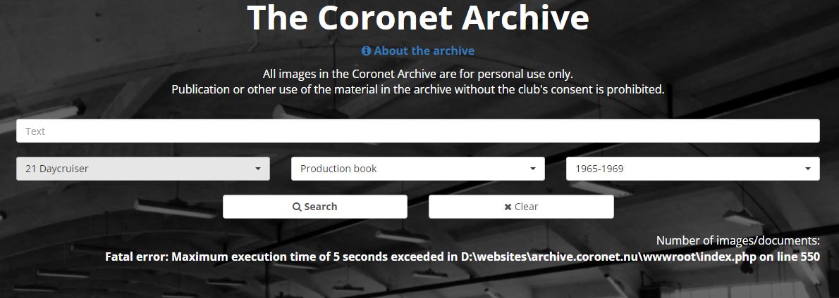 Att du upplever längre svarstider beror troligtvis på att det för tillfället pågår inmatning av nyskannat material (bilder, ritningar, dokument mm) i Coronetarkivet. Den bildbearbetning som sker av en stor mängd högupplösta bilder är ganska påfrestande för servern. Bara att ha lite tålamod och kolla in arkivet efter nytt spännande material! :-)