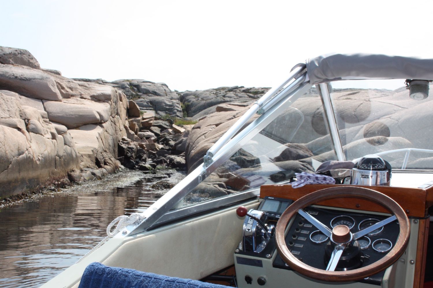 Eftersom den är monterad en bit föröver så vinner man två saker. Dels kommer kompassen längre från elcentralen (som i min båt sitter i ruffväggen framför ratten). Dels kan man lägga ett litet sjökort mellan ratt och kompass.