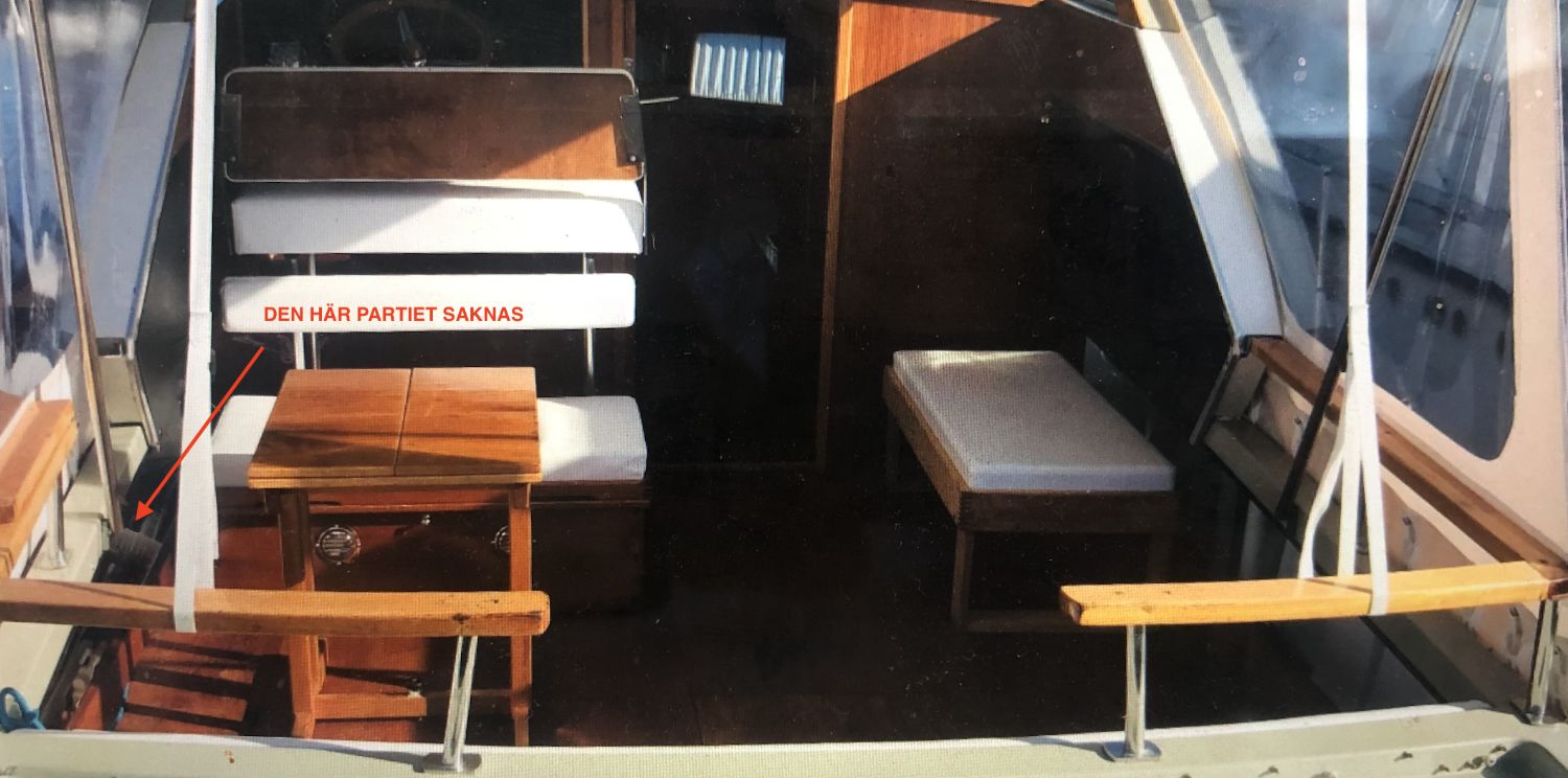 Är det sidopanelen som saknas? På min 31 aft cabin är det en vinylklädd masonitskiva. Kanske är helt annorlunda på 27 Seafarer?