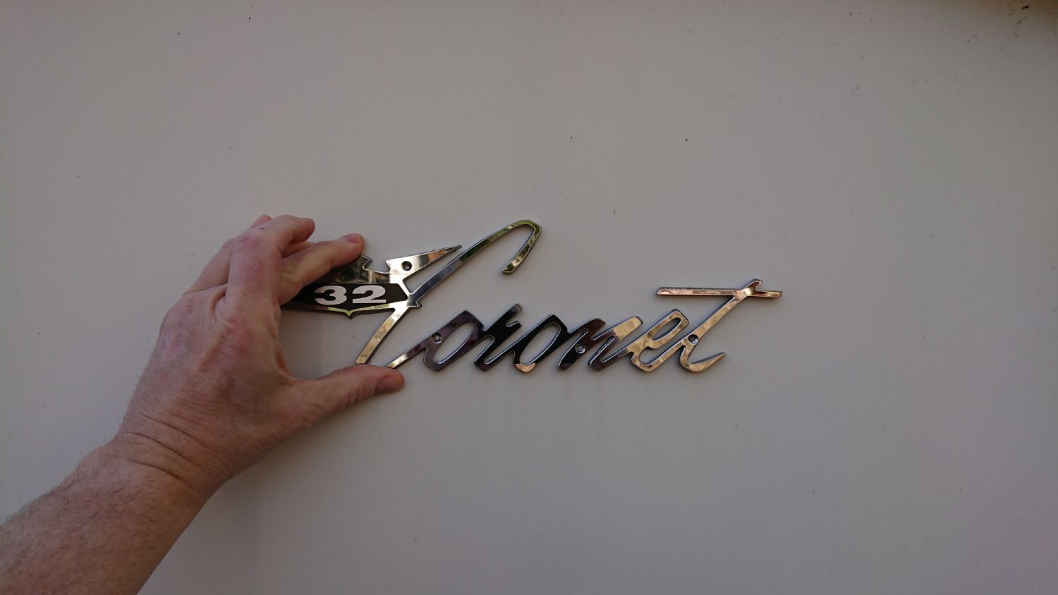 Tack för svarena. Mitt problem är att insidan av skrovet är beklätt och det är i så pass bra skick att jag inte skulle vilja riva bort det. Och insidan av skrovet i motorutrymmet har ljudisolering så jag ser inte skruvhålen från insidan utan att riva dessa. Men Mats om du kan mäta den ungefärliga positionen på emblemen skulle det underlätta väldigt mycket!