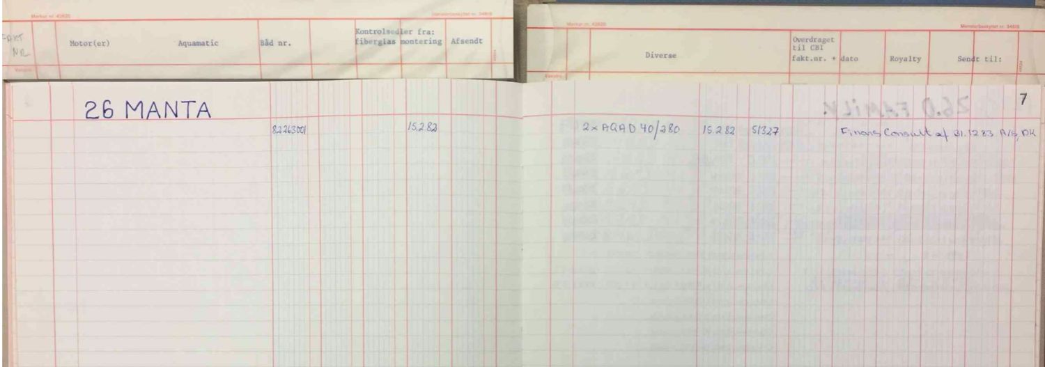 Tack för dessa intressanta inlägg, det vore trevligt om Johan kan scanna in artikeln från BåtNytt till vårt arkiv och Amund kan du inte skriva och berätta i Coronet News? Att det byggdes ett ex av Coronet 26 Manta finns belägg för i Coronet-arkivet (sök med ordet Manta i textfältet). Båten levererades till Düsseldorfmässan våren 1982. Året därpå dyker den upp i fabrikens inventering av båtar i lager i Mullerup, men vart den sedan tog vägen är oklart.