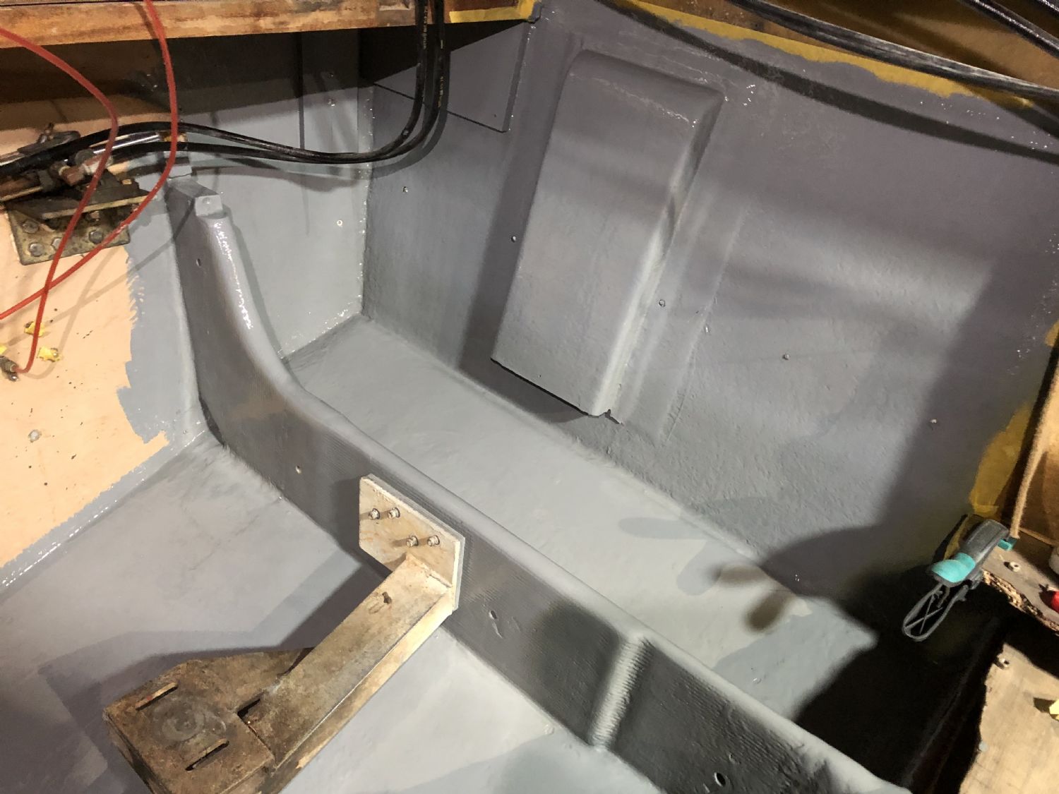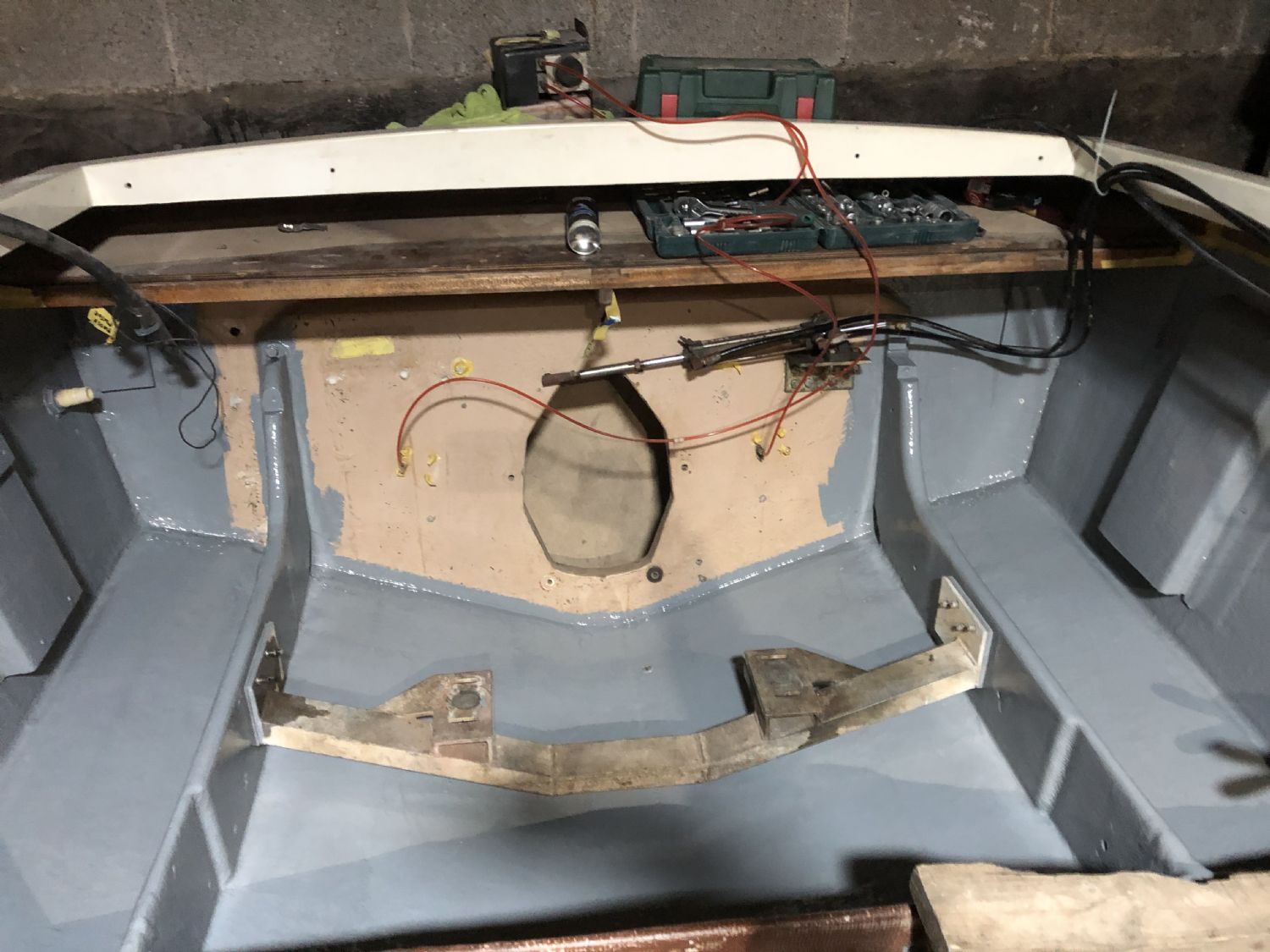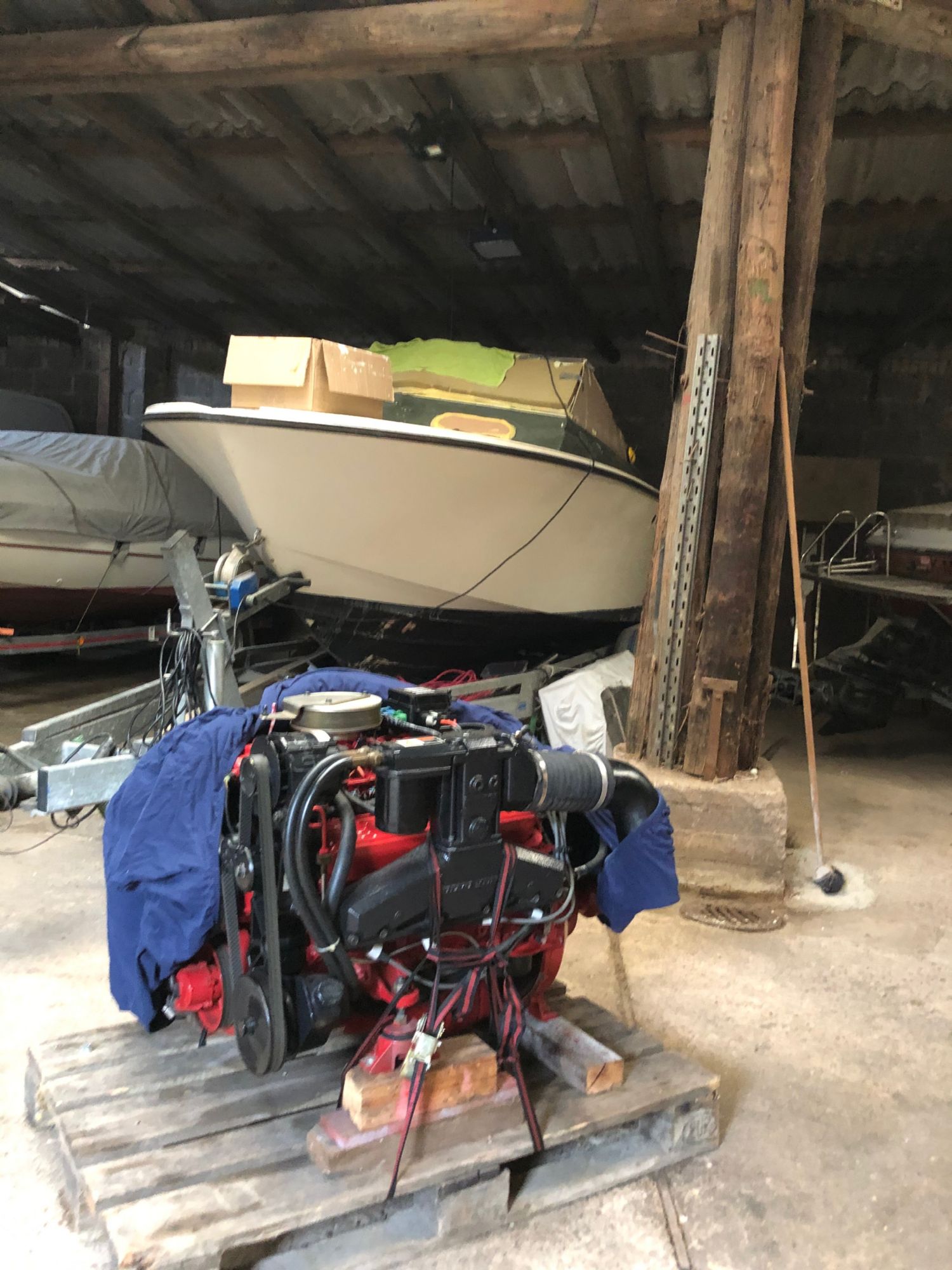 I bought a V8 Volvo Penta and the plan is to mount this motor on the beam the next weeks. "You have to go in there"