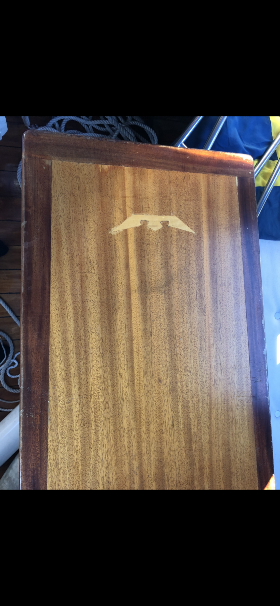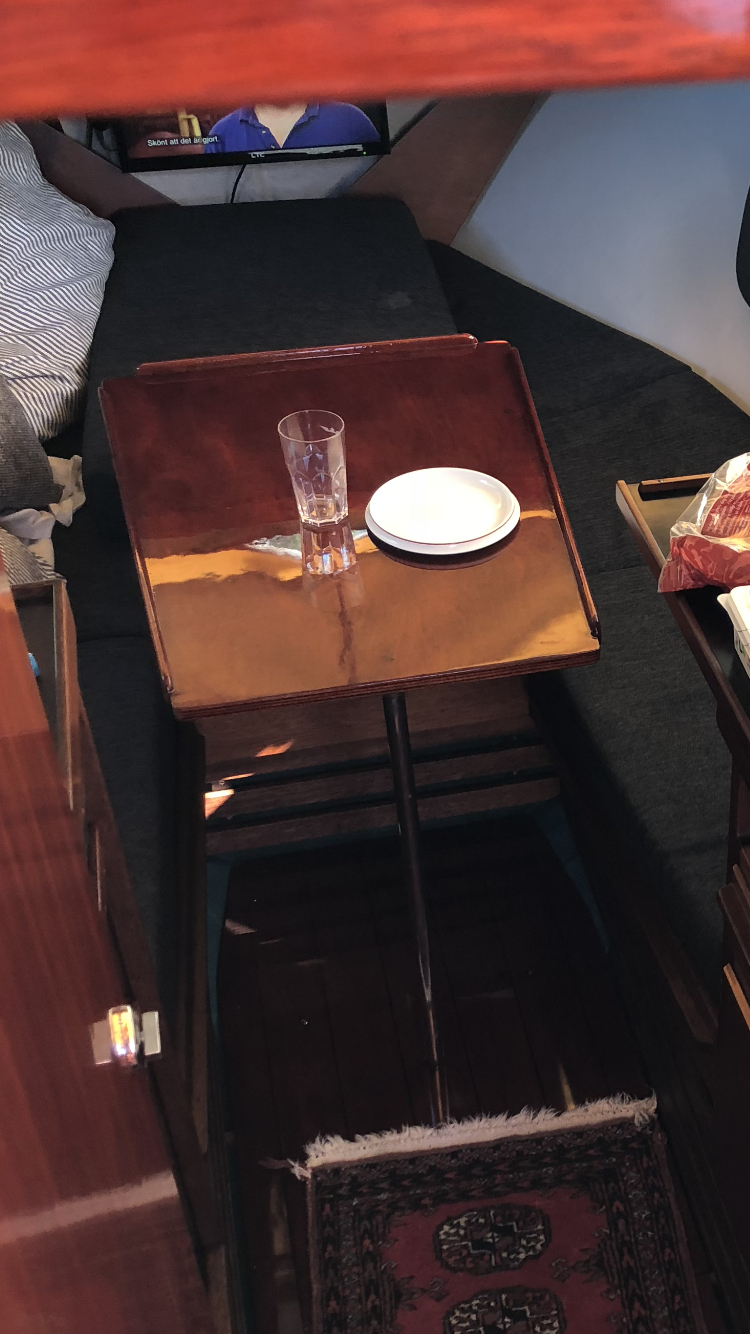 Bordet är inte orginal, orginalbordet i ruffen är den iläggningsskiva som man lägger i mitten av bädden.