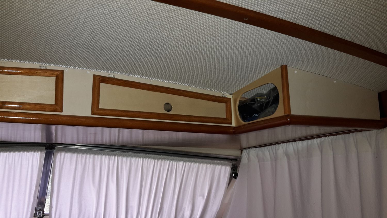 I removed the front wall in my Coronet 24 de Luxe, then inserted a piece of wall next to the door. The small cupboard in the cabin is gone now. But there is now space for a washbasin in the toilet cubicle. - I made up for the lack of space with a wall cupboard across the entire width.
