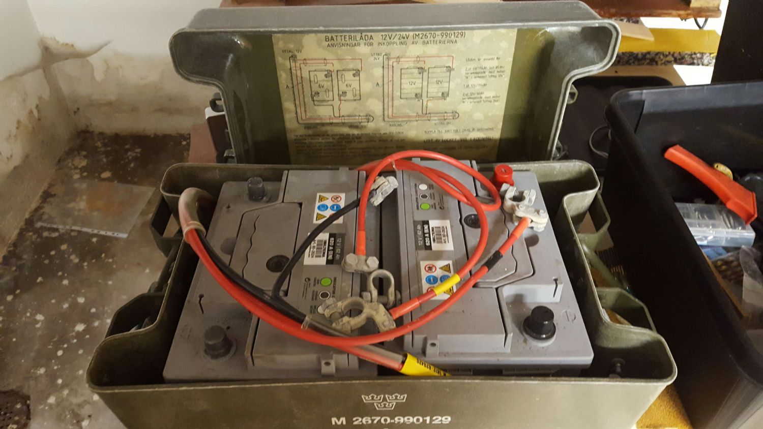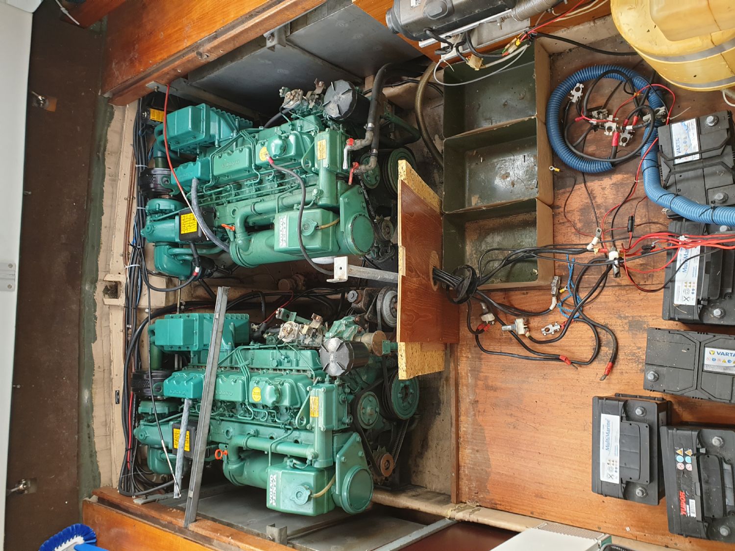Jag har 5 100 ah batterier på babord sida bredvid motorerna.