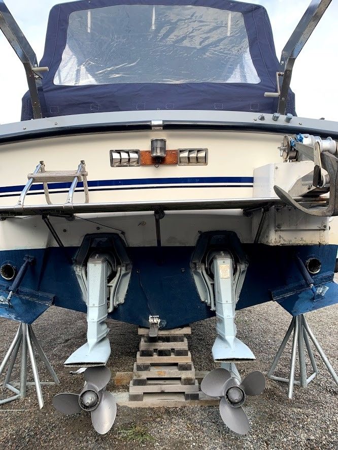 Jeg har iår købt en fin 32OF, med 2 GM peninsular diesler. De går rigtig godt og har hver 170 hk, men båden vil ikke gå mere end 18 knob. Der er monteret solas 3, 15,5 x 16 så man vil nok kunne vinde lidt med større prob.