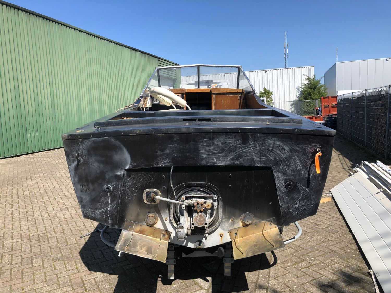 But first engine needs to be taken out, stringer (OMC) out of transom. Fill the hole, lots of glassfiber work, make new cutout for VP transom and install engine.