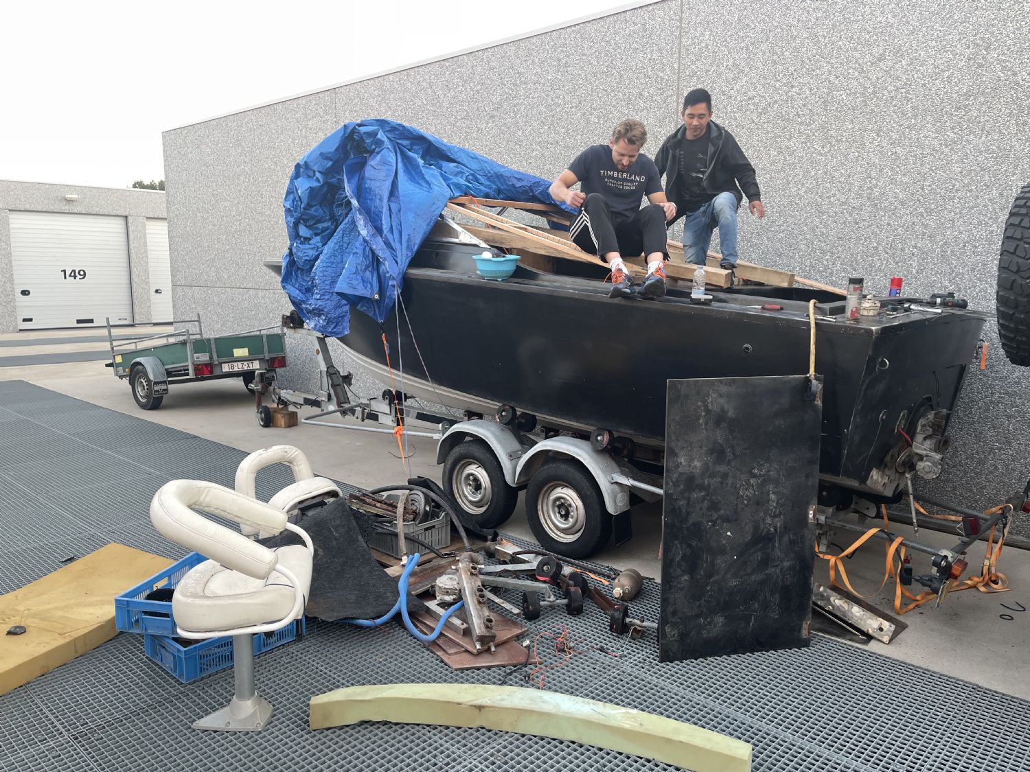 Interior en exterior paintwork, previous owner prepared outside pretty well, but did a single layer spray paint finish, a nightmare to be honest. But grain 320 takes me to the gelcoat straight away. Want to finish the whole boat with Ijssel DD coat.