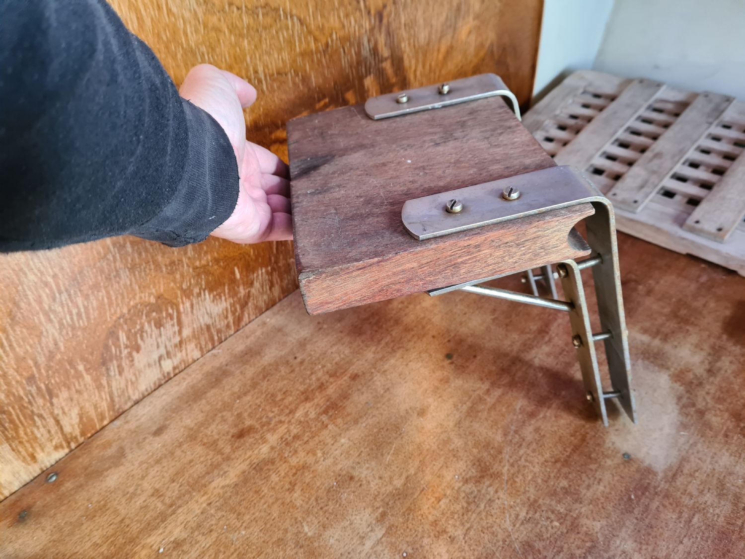 Det är inte originaldelar. Ser ut att vara hemmasnickrat, eller modifierade köpedelar. Frågan är vad de använts till? De hör kanske inte ihop. Den ena ser ut att vara ett lock till en box av ngt slag. Kanske den andra är ett fotsteg att fästa någonstans. Förre ägaren borde väl kunna ge besked.