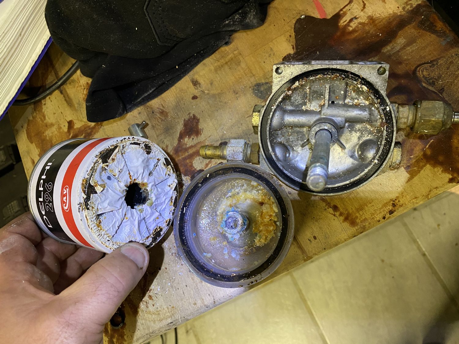 Hvad kan jeg gøre for at forhindre dette?. Billedet viser et nyt brændstoffilter der ser sådan ud efter 1 år med E 10. Tydeligt angrebet.
