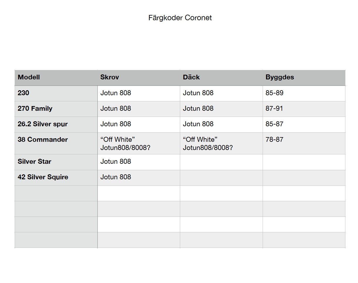 Enklast att du söker på termerna “gelcoat” och aktuell båtmodell. Se bifogad tabell på de båtar jag har hittat i samband med att jag målade om mitt däck. Kollade 350DC idag, ingen träff, men hittade Silver Star.