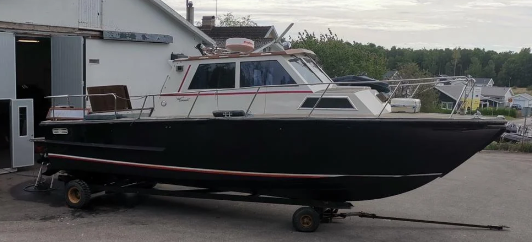 Det är en P32 Polisbåt från Karlskrona. Båten hade ursprungligen två v.p 70 motorer med vinkelväxel. Byggdes om för ca 35 år sedan. Båten blev lättare och snabbare. Tankarna flyttades fram till mitten av båten.