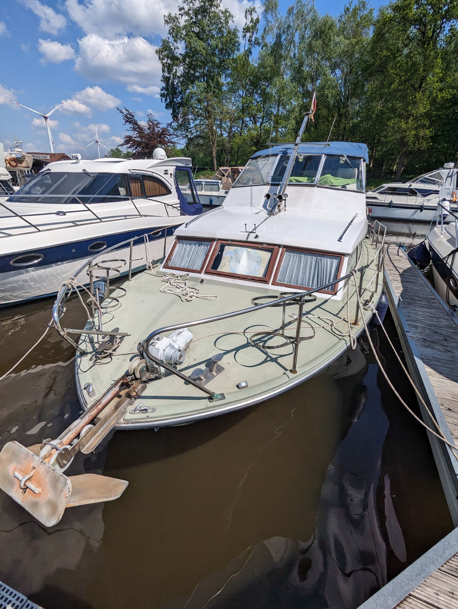 Moin all and greeting from Germany, a brief introduction from me. I have been reading along in the forum for the last 4-5 years or so. I had an 22 Explorer "Hard Top" in the east german lake district for a few years and I just bought a Commander 30 and transfered it from Hamburg closer to my home with a few friends last week. The boat had been sitting in the water for the last two years and the aft cockpit has some water damage on the wood as well as the tarp has some serious holes. Otherwise the interior is in near mint condition. All in all she is absolutely kitted out, new 430 DP engines in 1991, stainless steel tanks, petrol heating and warm water, shore power, deck wash pump, showerhead at the bath platform, hifi system with approximately 30 speakers spread out through the boat. Shore power is combined with a 230V inverter which unfortunately does not work anymore. A wing with a fiberglass and aluminium on wood frame construction that is missing the interior panels. somebody spent a whole fortune equipping her in the 90s but it appears that nothing much has since been done except some dodgy quick fixes etc. Fwd cabin windows have been replaced with wood frames and are leaking. The previous owner was keen to sell it and i just saw the mahagony and general sound foundation and just went with it. Infinite potential but also infinite amount of work... just needed to transfer her 300nm through inland waters (going the short way via north sea would have been a possibility but i disregarded that due to her condition, and the trip we had proved me right) Problems started early, everything went fine until the first lock (30 minutes or so) when suddenly the port engine died. We went to the next marina which was just straight out the lock and took of the floor plates, pure water, gunk and grime in the filter... so we spent the evening pulling the bottom layer of the tank with a small bellow pump into a bowl, separating the top layer which was perfect petrol into one canister and the bottom water and dirt into another one which we lateron marked with red tape in order to not mix it up. quick trial in the morning and off we went, the river elbe, due to timing we had a considerable ebb tide and wind from ahead and lost about 3kn of speed to the environment. After Oortkaten theres no speed limit so i slowly approached wot and she came into plane very controlled and gently (trim tabs not working) but we were doing only some 15kn at 3500 rpm and the wake looked a bit asymmetric, anyways, throttle back down to 1400 and with some 3-4 knots we were marching on up the river elbe into the mittelland kanal. one of our next stops was the gigantic ships elevator in Scharnbeck, i was so focused on making sure all was going smooth that i didnt really have eyes for this engineering marvel, partly also because the starboard engine died idling when we came into the lock and my approach was, well lets call it sub-optimal... out the lock and we hit the next berth, could not immediately figure it out what was going on, we tried swapping the earth cable as i had some strange currents between the two engine blocks and battery negative, thought maybe a cable was loose and or corroed. and aye, some starter spray and the starboard engine came to life, let it warm up again, back to idle, dead... i figured it must have to do with the carburetor but i could not immediatley find any useful information on the internet and i am not a petrol engine guy, all my previous cars and boats had diesel engines. Petrol and carburators are for lawnmowers in my humble opinion and i had my fair share of hard to start lawn mowers, its usualy the idle gas screw or the accelerator cable or the spark plugs, i tried to find out where the offending screws on the what appears to be rochester 2bbl carb are but nada, also the engine manual which i downloaded before the trip did not specify carb set up so... we started the stbd engine and left it on 1200-1400 which appeard to run smooth, next lock was a quite a distance and i would then be prepared to maneover with only my port engine. Weather was getting better and in the early evening we had sunshine and were covering some 80km on our first full day. we moored up in a parking area in the canal and fired up the Barbeque, what a day! next day we started early after attempting to fix the engine for an hour and had the next big lock in Uelzen. Asked my crew if anybody spotted the phone booth to contact the lock, nada. Tried to phone them but noone picked up. so we waited for a good two hours, i enjoyed the sun, tried googling for the bloody carb manual and went through the damn thing in my head. I had found the idle fuel screw and after observing the accelerator linkage i spotted the cam with a locked screw. Closed the idle fuel screw and opened it up i think 4 turns, idle air screw 2 turns more in, fired right up! boy was i happy! we made 140 km that day and although i was mostly just waiting for the next disaster to strike started to get a vibe for the boat and enjoyed the ride at least a little. No more dodgy maneuvers, twin engine is just the coolest on a boat of this size! we had some minor issues/ difficulties that i am not going to bore you with, boat is nearly home 500km in ~4,5 days, just two locks away from home which are currently closed until beg. of june when this piece of work will finally come home. I have already begun stripping crap out and tracing cables pipes and so on. This year she will get a new tarp, the wing will need some gelcoat and the overall hull will get a new polish. I have not seen her underside yet, but i presume port prop is either half missing or severely damaged, drive trim is not working and the trim tabs neither. My intention is to restore her to her former class and style but upgrade the equipment to modern stuff as we go ahead. Will take her out with my Mum and a few friends for coffee and cake on the canal tomorrow.