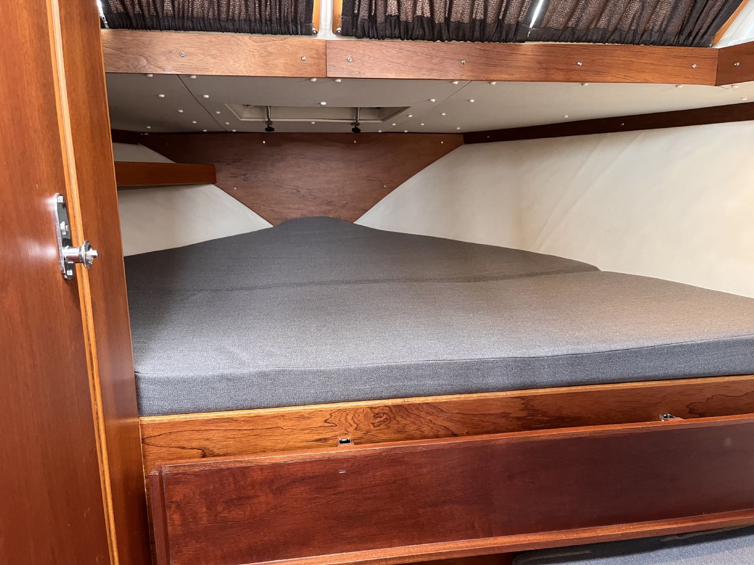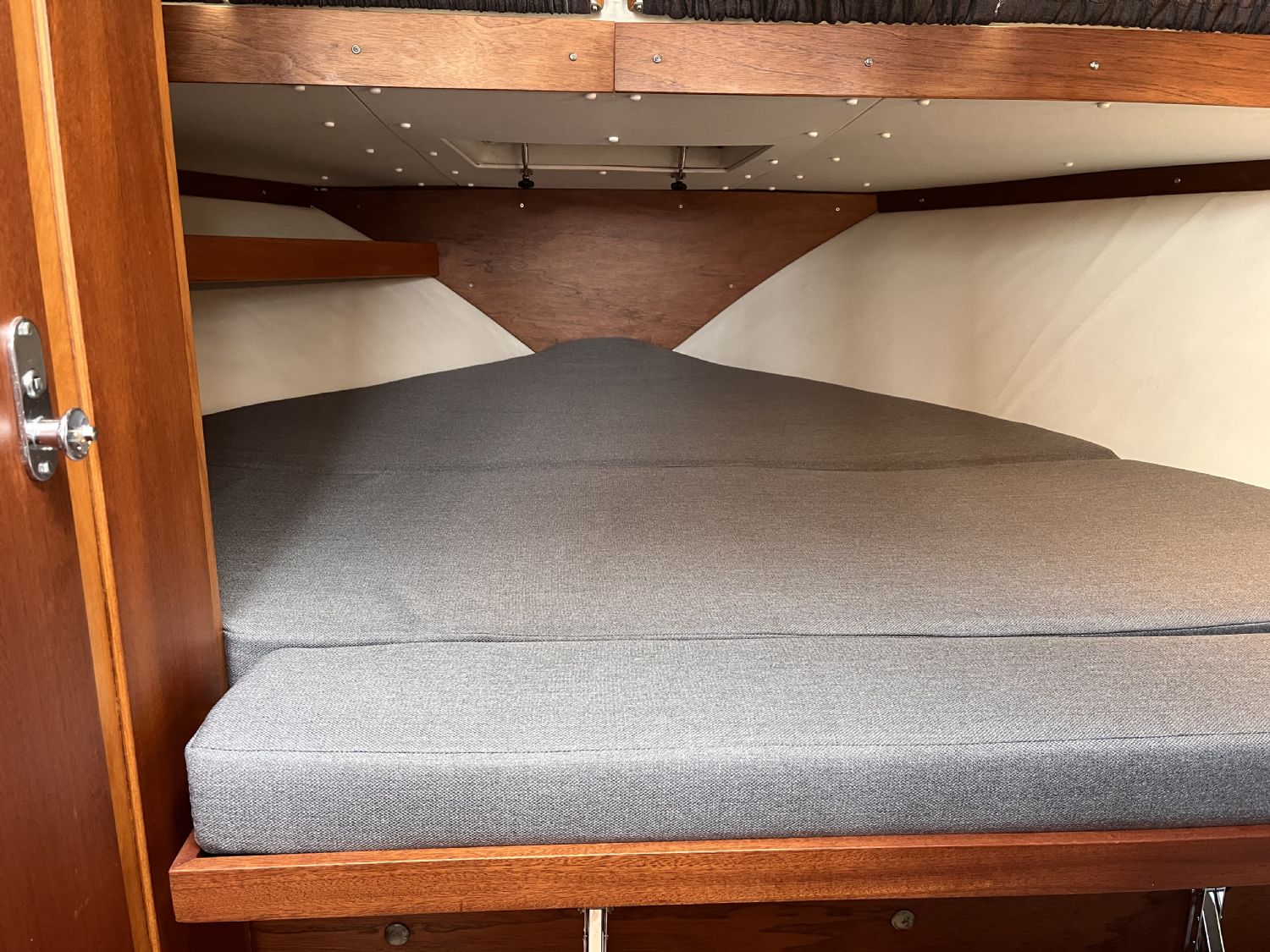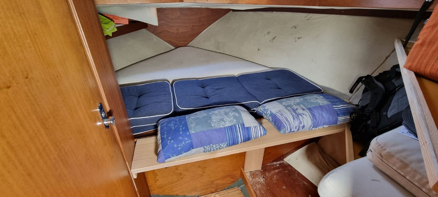 Vi har også lavet en køjeforlængelse. Den er blevet meget mere brugbar og behagelig at sove i.