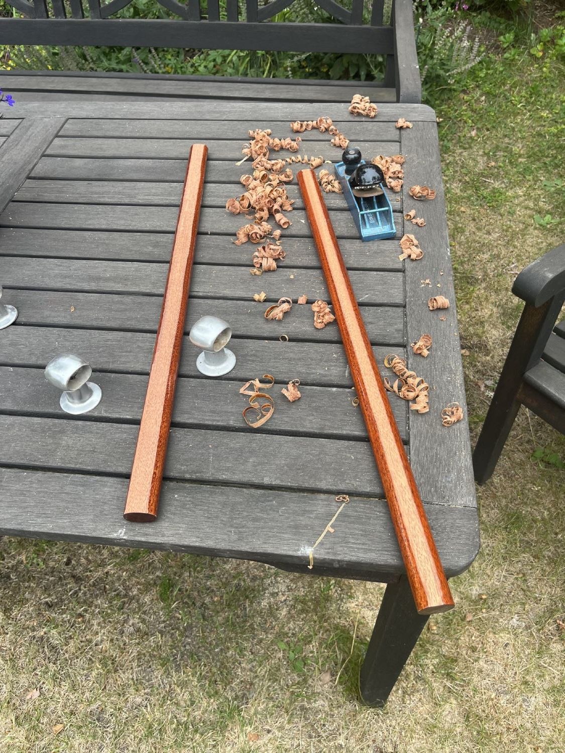 2. Kontrollera profilen på de nya räckena mot fästena innan de lackas. Hos mig passade profilen inte men ingen värre fara än att en hyvel och lite nytt lack inte löser problemet.