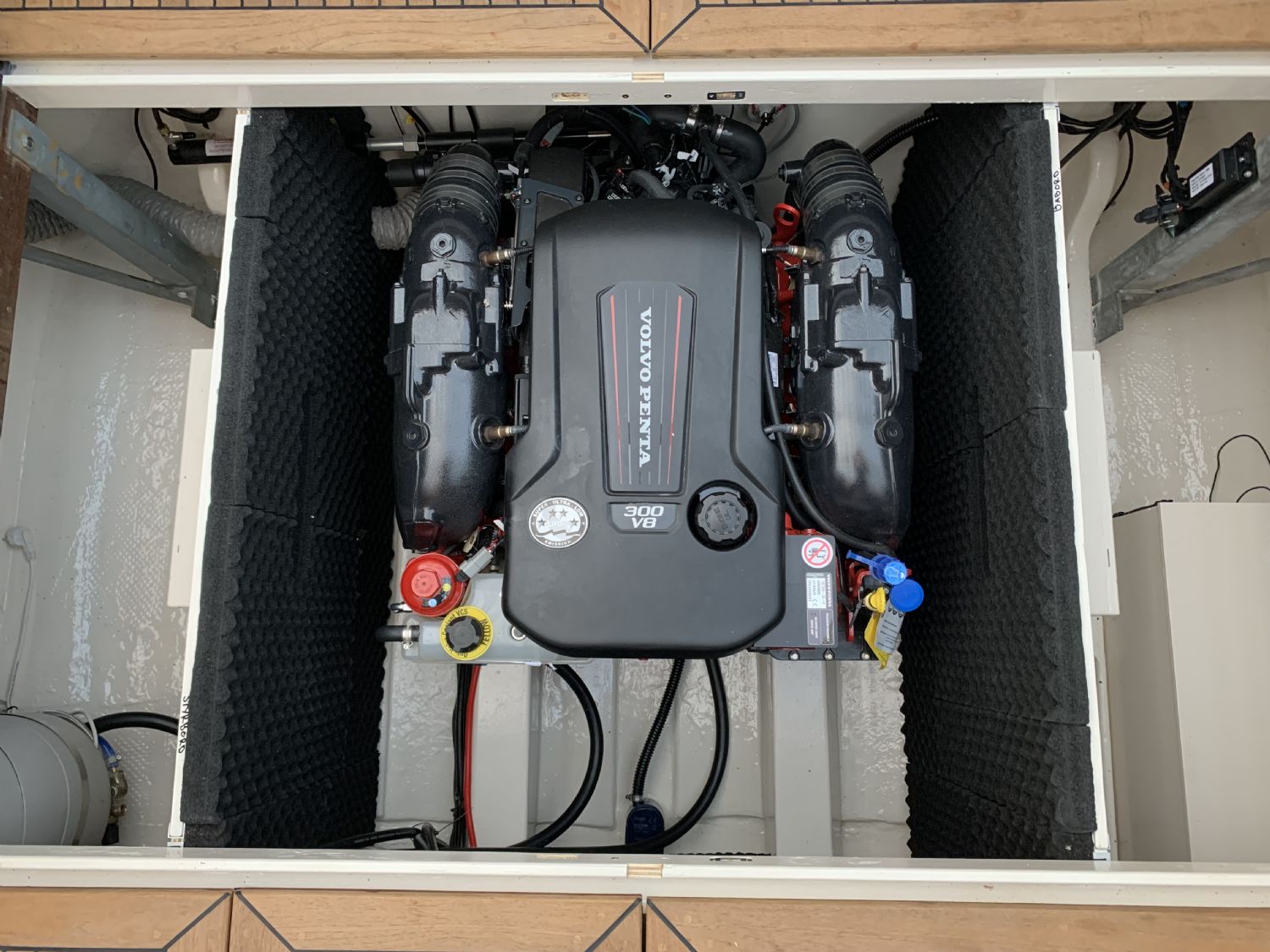 Satte en VP V8 300 CE i vår 27 Seafarer II för drygt två sedan. Vi renoverade hela aktespegeln och plastade nya motorbalkar eftersom det satt två motorer i den förut. Motorn får precis plats under balkarna som bär upp durkarna i sittbrunnen. Passade på att monteta zipwake samtidigt. Båten går helt fantastiskt, ingen trimning bara att gasa och köra. Den gör 35 knop och lagom marchfart är 18-22 knop med ca 1,8 liter per distans.