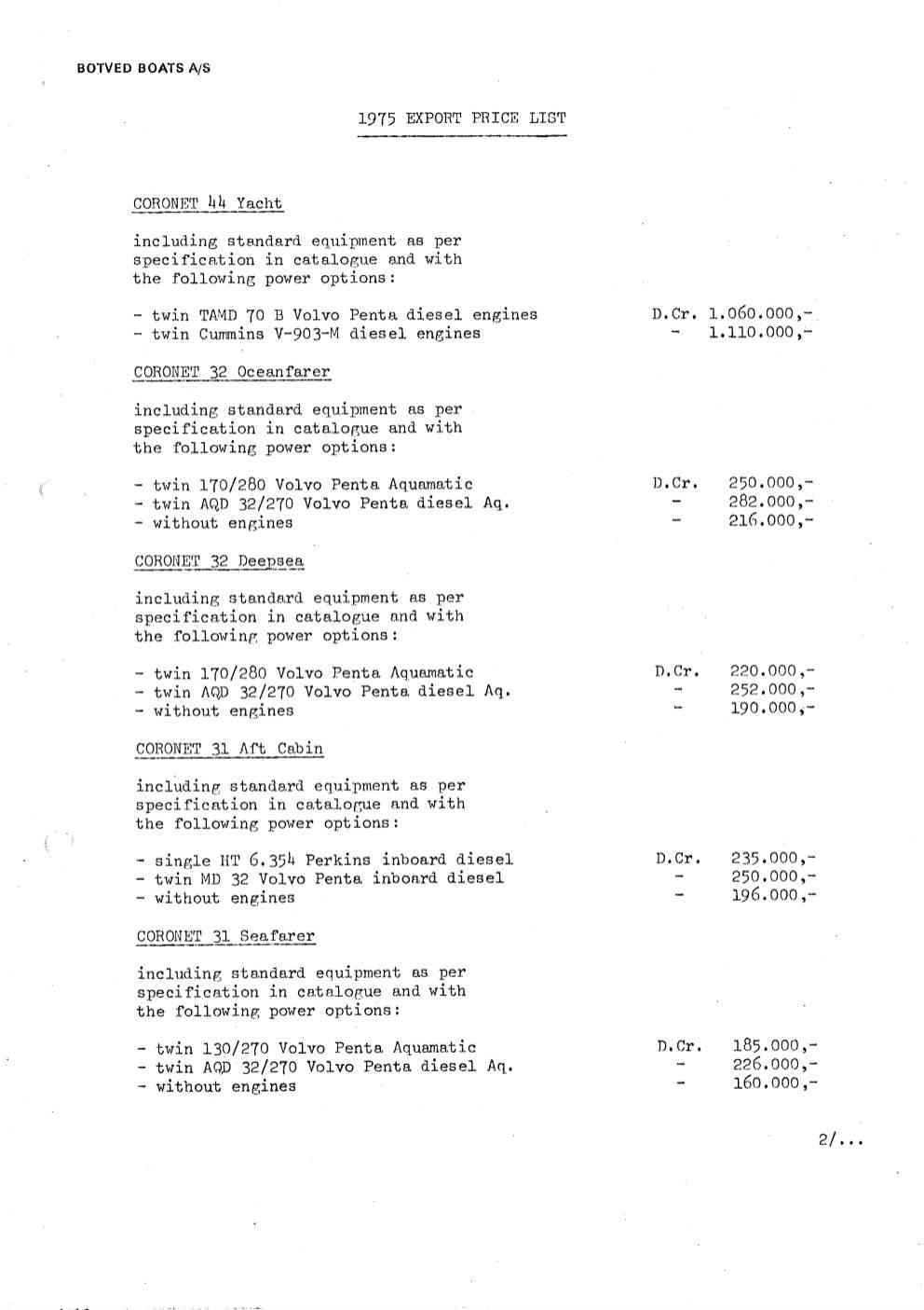 Ett tips är att titta på prislistorna i arkivet. ´Där finns ofta uppgift om de olika motoralternativen i de nya båtarna. Prislistor med 32OF från 1974-1976, t.ex. 9-25-010-150a, visar att det då fanns två motoralternativ, Volvo Penta 170/280 och Volvo Penta AQD32/270. Kolumnen med siffran 6440 längst till vänster i produktionsböckerna har såvitt jag vet inget med motorerna att göra.